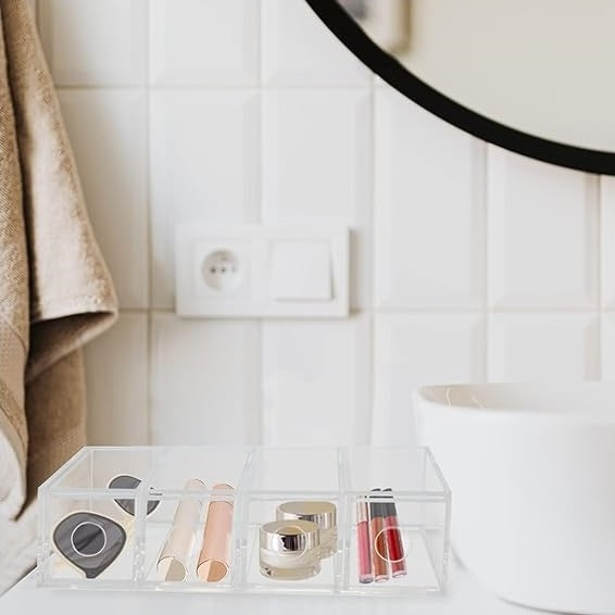 VERSATILE & FUNCTIONAL: This slim organizer is perfect for making the most out of your space; Use one or stack multiples; Line them up side by side to create a custom storage system; Perfect for storing all types of household essentials; Use in the bathroom for blush, lip pots, face creams, eye shadow palettes, lip gloss, powder, serums, lotions, and hair ties; Great for small space living and tiny homes; Use in apartments, condos, college dorm rooms, RVs, and campers
